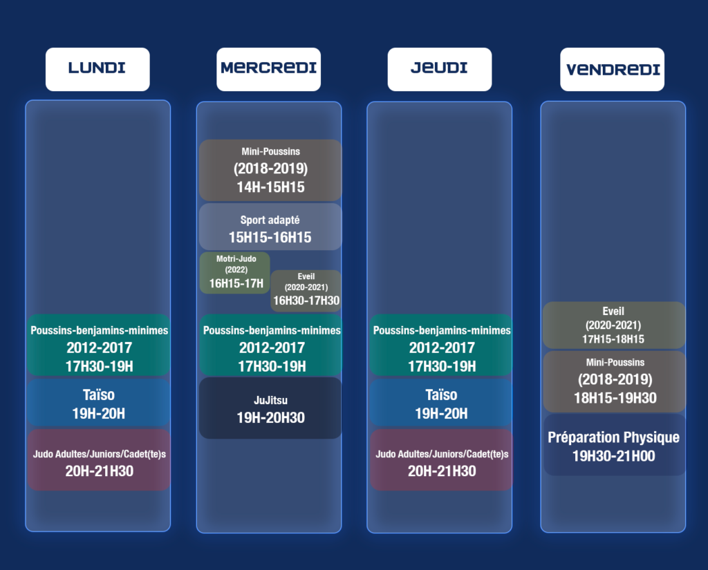Horaires des cours Aspom JudoSaison 2025-2026 Tél. 07 69 71 76 72Mail : Aspom.judo@gmail.com 131 Bis Rue Amédée St Germain 33800 Bordeaux